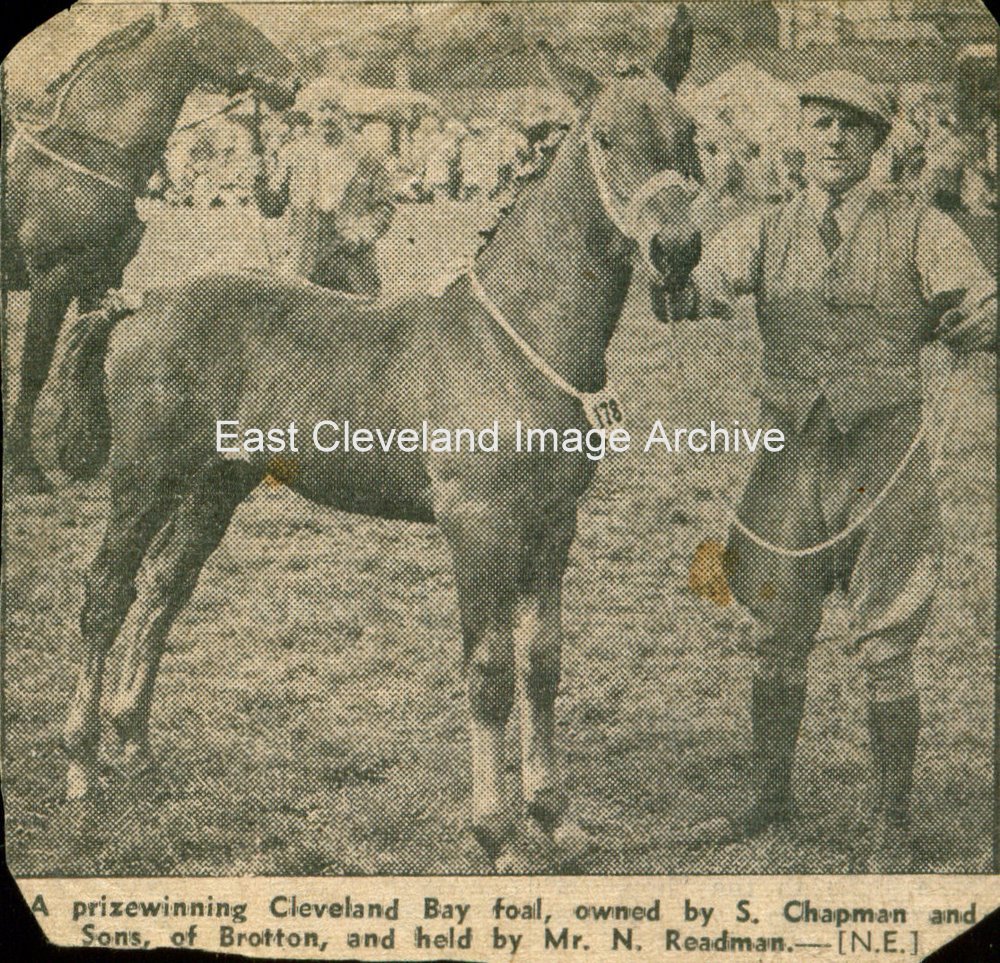 Derick Pearson told the Archive: “My grandfather on the old cart in Lumpsey fields. Looking toward North Skelton on extreme left and with Skelton church tower dead centre on horizon. This was Lady Dolly in the shafts, she was a pleasure to work with. Cleveland Bays were multi-purpose horses, they could hunt, do point to point and were tremendous workers. Size for size, they took some beating. My grandfather in this photograph was about 78 years old and had spent a lifetime with horses. He finally achieved his dream when his champion (Chapman) was purchased by the Queen, who’s buyers came to see them at Brotton. He won a Professorship and Title with the Berry School of Horsemanship in Ohio USA in 1912. The certificate is still in the family. He was one of only two people in England to ever win it by correspondence and was booked to go to Ohio on the Titanic from Southampton in 1912. Circumstances prevented him from going. How fortunate, I may never have been here to tell the tale had he gone at that time. Another thing worthy of mention is that the original Cleveland Bay was called a Chapman. It was a tinkers or pot, pan and knife sharpeners horse. Those travelling people were called Chapman’s in times of old, hence the name which was attached to the breed. Grandad was always proud of this, saying these horses were named especially for him and that is why he named his champion ”Chapman”.