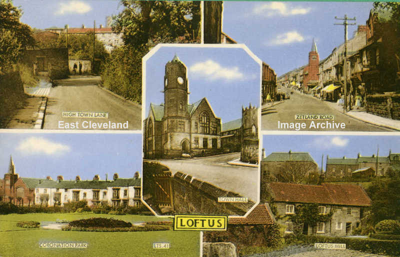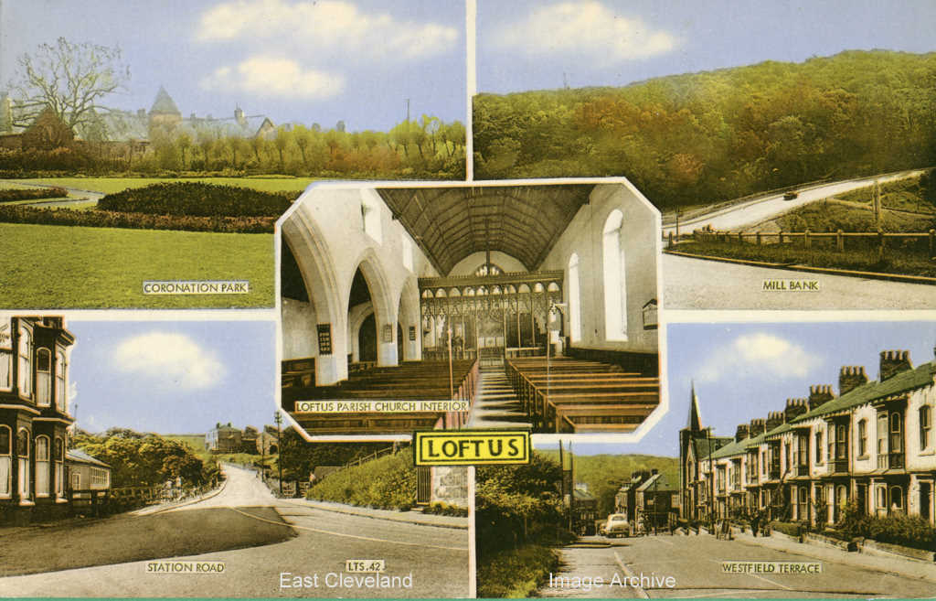 A colourful, tinted Frith postcard, showing views of Loftus. A note on the back of the card says that it was bought in 1968. Image courtesy of Carolyn Richards.