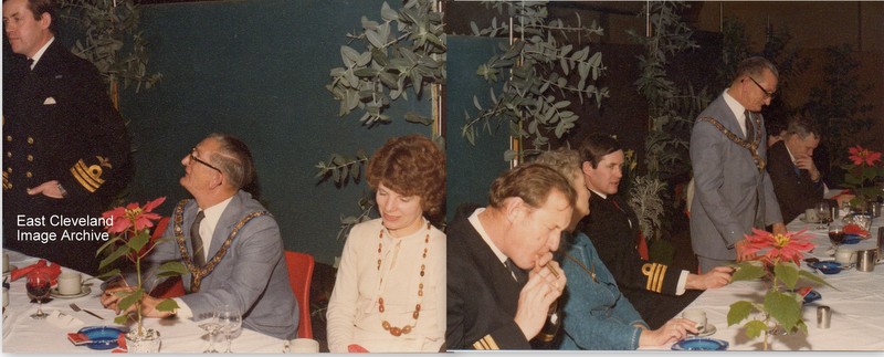 The Archive realised that this was some form of Naval function which Norman and Hilda Barwick attended. Roger Barwick assisted with: “I can’t help much with names but the occasion may be the visit of HMS Diomede in June 1981 to Middlesbrough. I have a small commemorative ash tray which was presented to my Mam, which is apt really when you look carefully at the photograph and it is probably Commander Pepe sat between my Mam and Norman.”