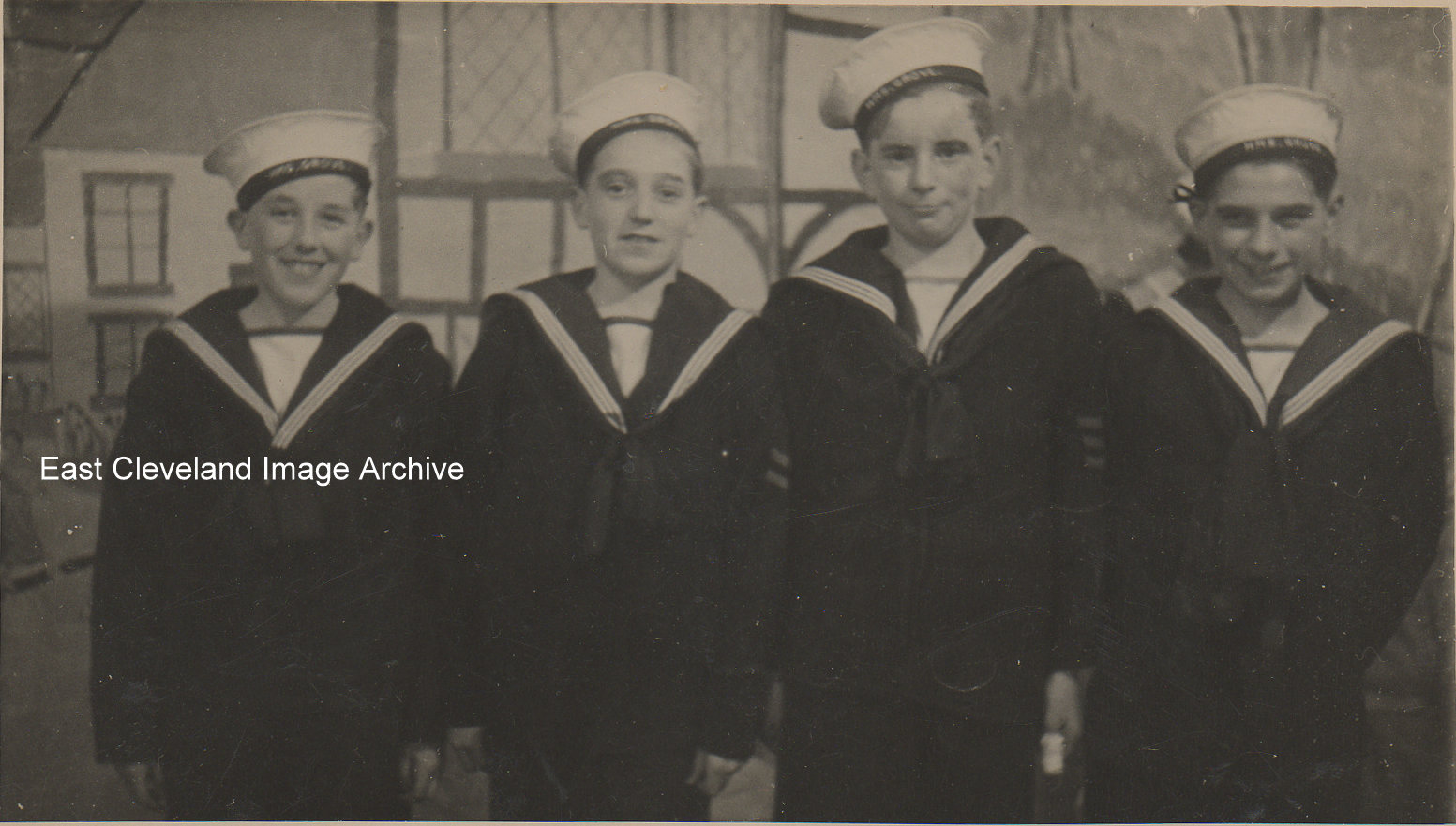 Once again at the pantomime in Skinningrove and the sailors are: Norman Trattles, Eric Rowe, George Wilson, John Winspear. Where are you now sailors?