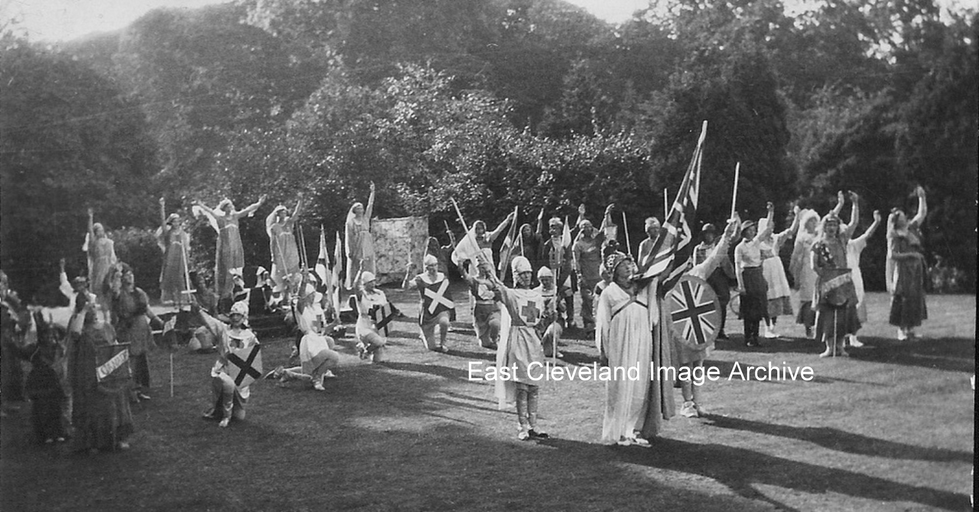 Another photograph from Owen Rooks showing a pageant he thinks about 1935 probably for the Silver Jubilee of King George and was set in the grounds of Skelton Castle.