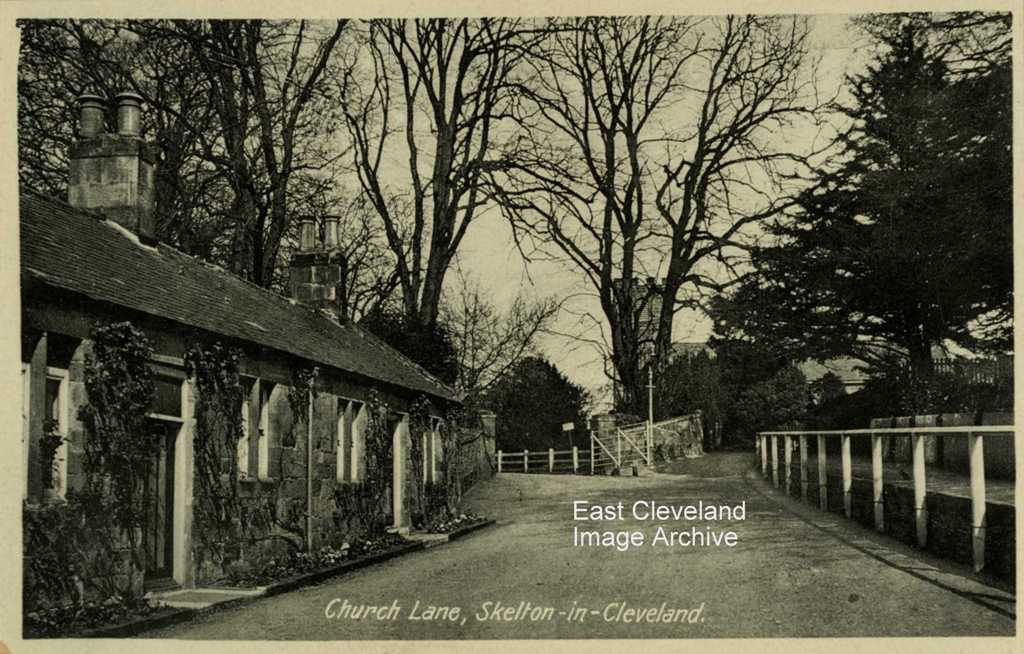 The secondary entrance to Skelton Castle from the Guisborough road; today the cottages still remain in this almost unchanged scene.
